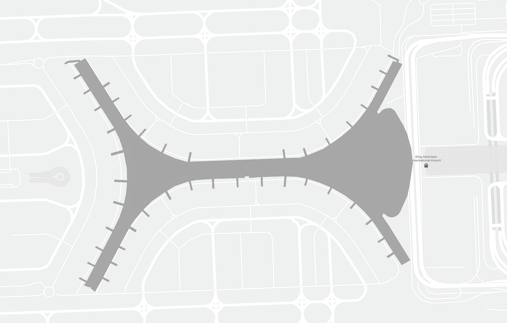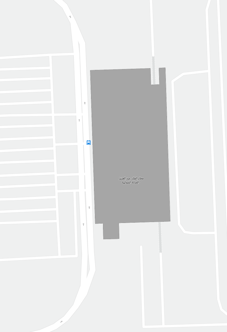 Detta är en zoombar karta över Jeddah (JED). Kartan visar utomhusområden med terminaler och parkeringar och – på vissa flygplatser – även detaljer om gate-områden, hyrbilsanläggningar och andra faciliteter när du zoomar in.