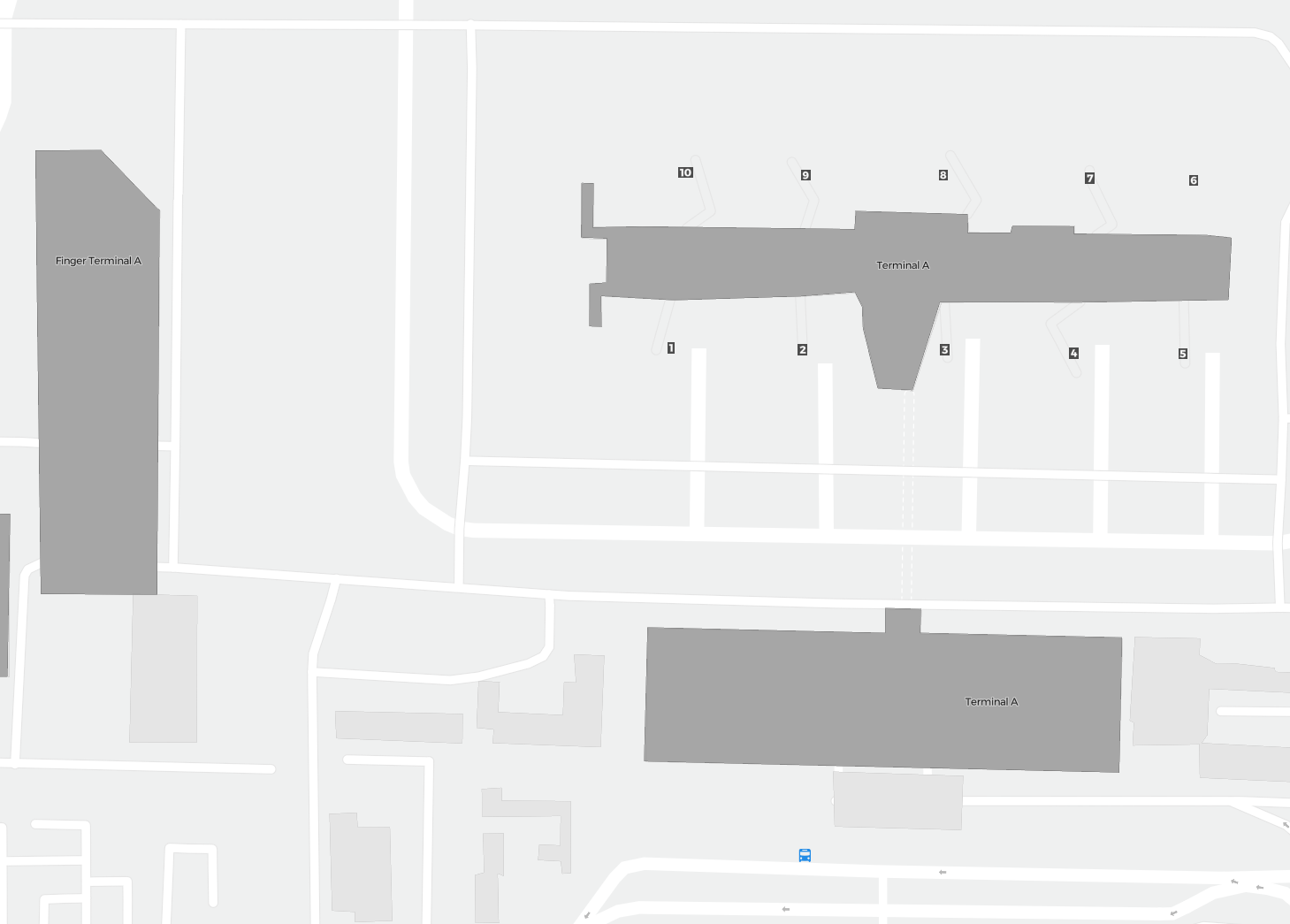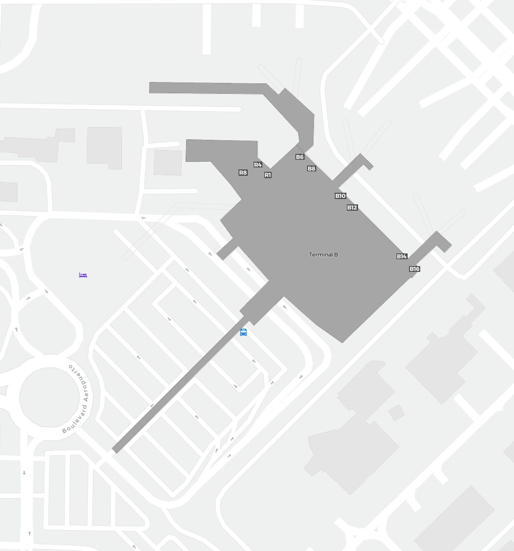 Detta är en zoombar karta över Monterrey (MTY). Kartan visar utomhusområden med terminaler och parkeringar och – på vissa flygplatser – även detaljer om gate-områden, hyrbilsanläggningar och andra faciliteter när du zoomar in.