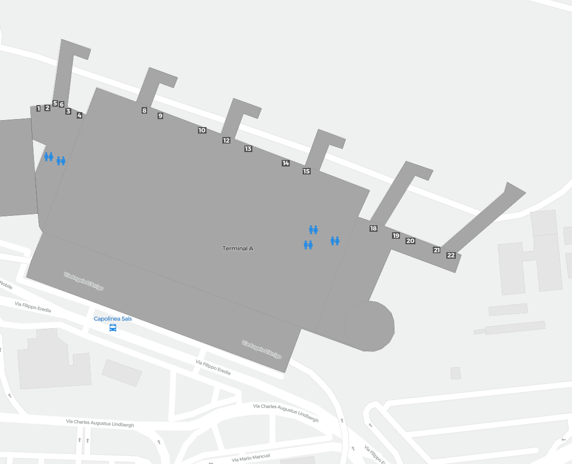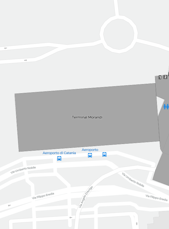 Detta är en zoombar karta över Catania (CTA). Kartan visar utomhusområden med terminaler och parkeringar och – på vissa flygplatser – även detaljer om gate-områden, hyrbilsanläggningar och andra faciliteter när du zoomar in.