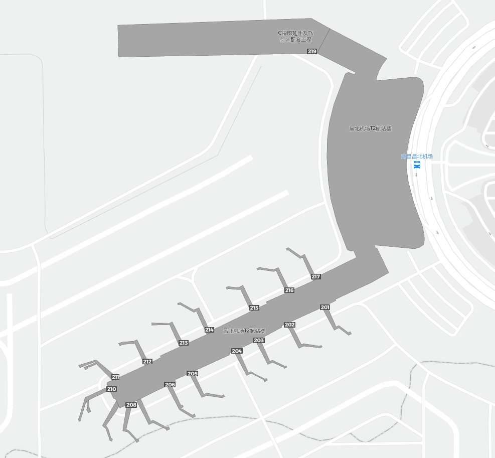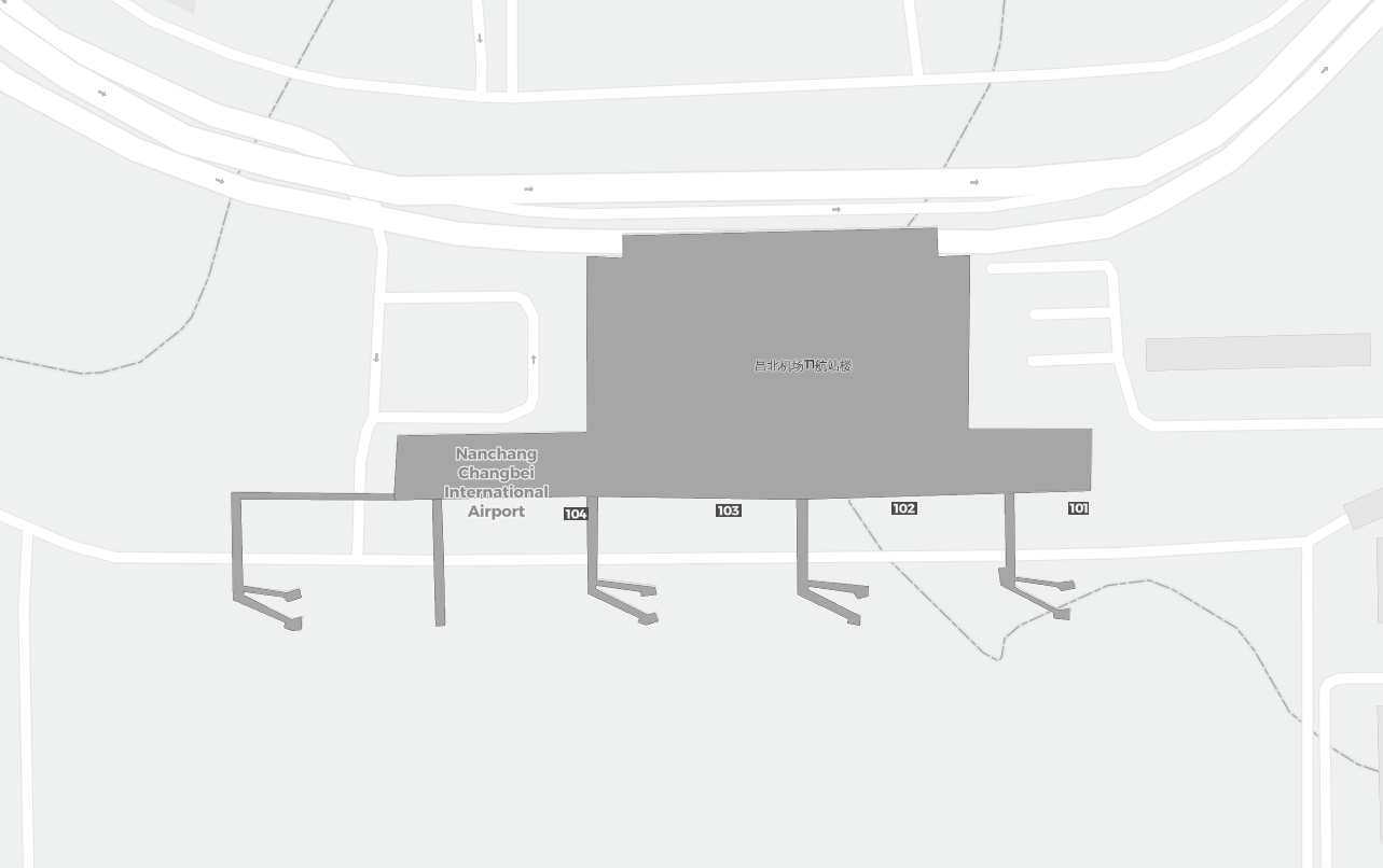 Detta är en zoombar karta över Nanchang (KHN). Kartan visar utomhusområden med terminaler och parkeringar och – på vissa flygplatser – även detaljer om gate-områden, hyrbilsanläggningar och andra faciliteter när du zoomar in.