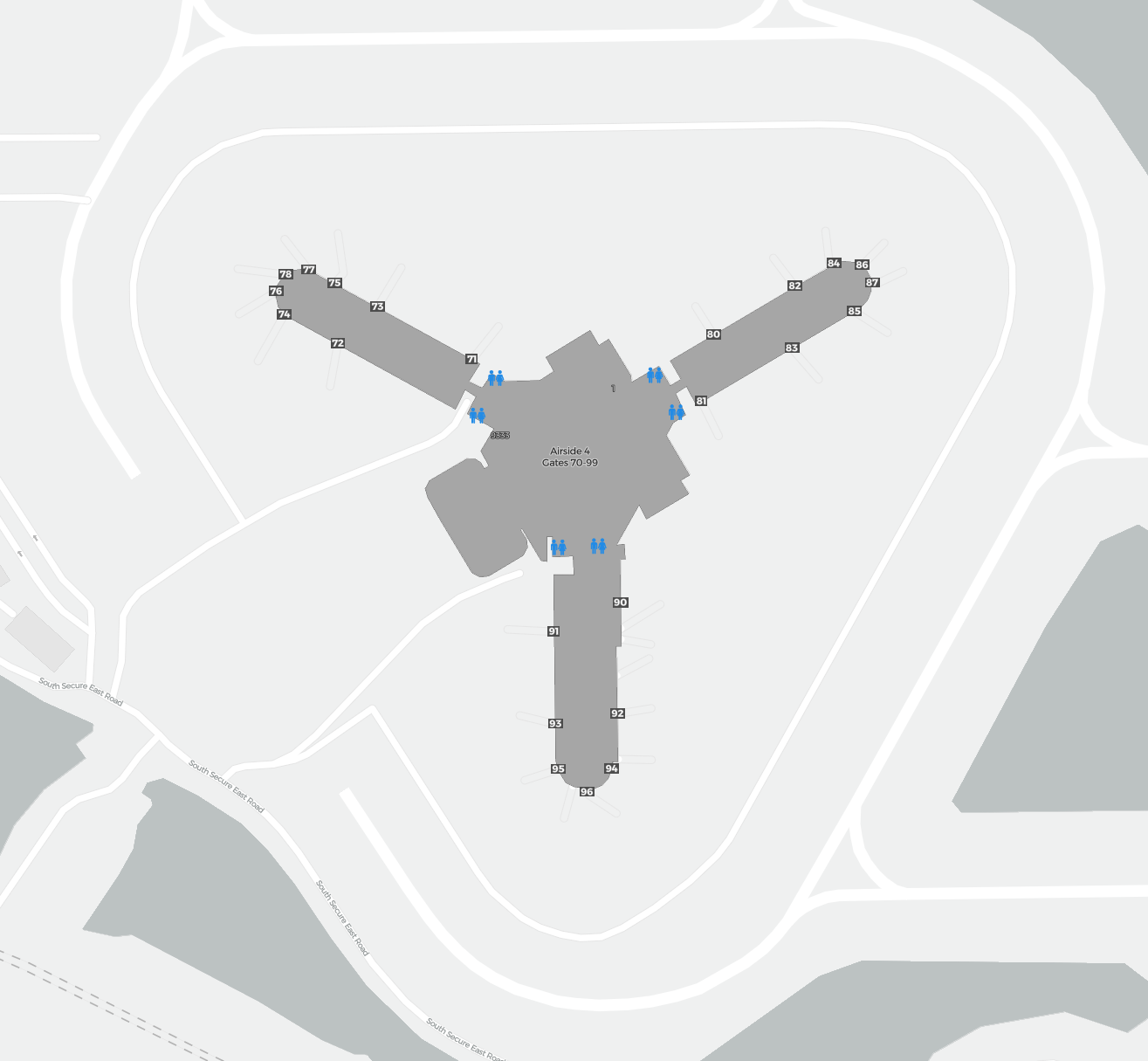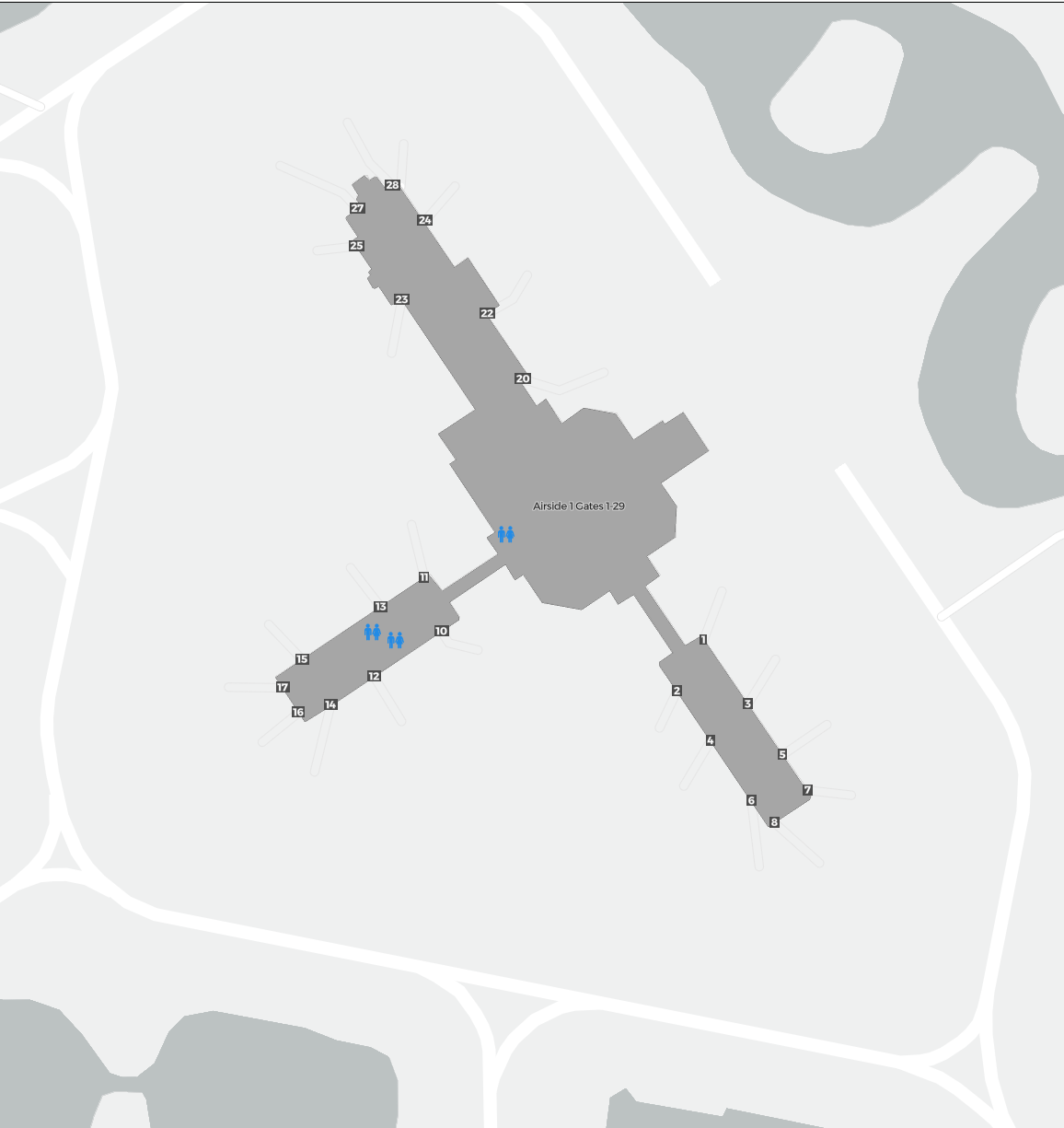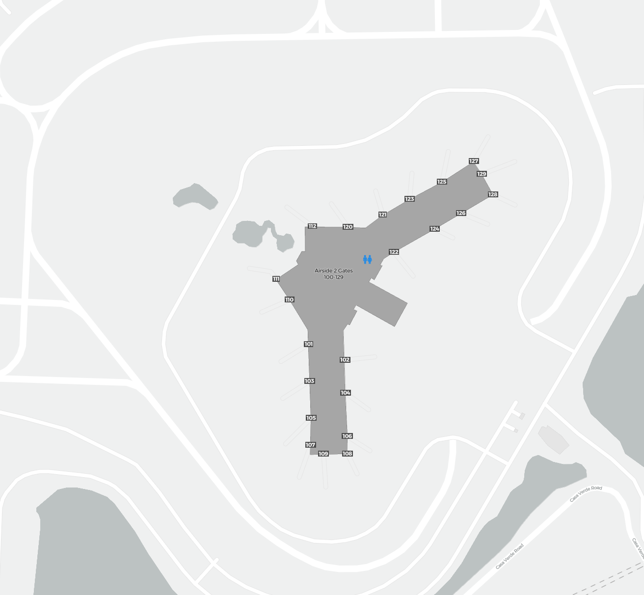 Detta är en zoombar karta över Orlando (MCO). Kartan visar utomhusområden med terminaler och parkeringar och – på vissa flygplatser – även detaljer om gate-områden, hyrbilsanläggningar och andra faciliteter när du zoomar in.