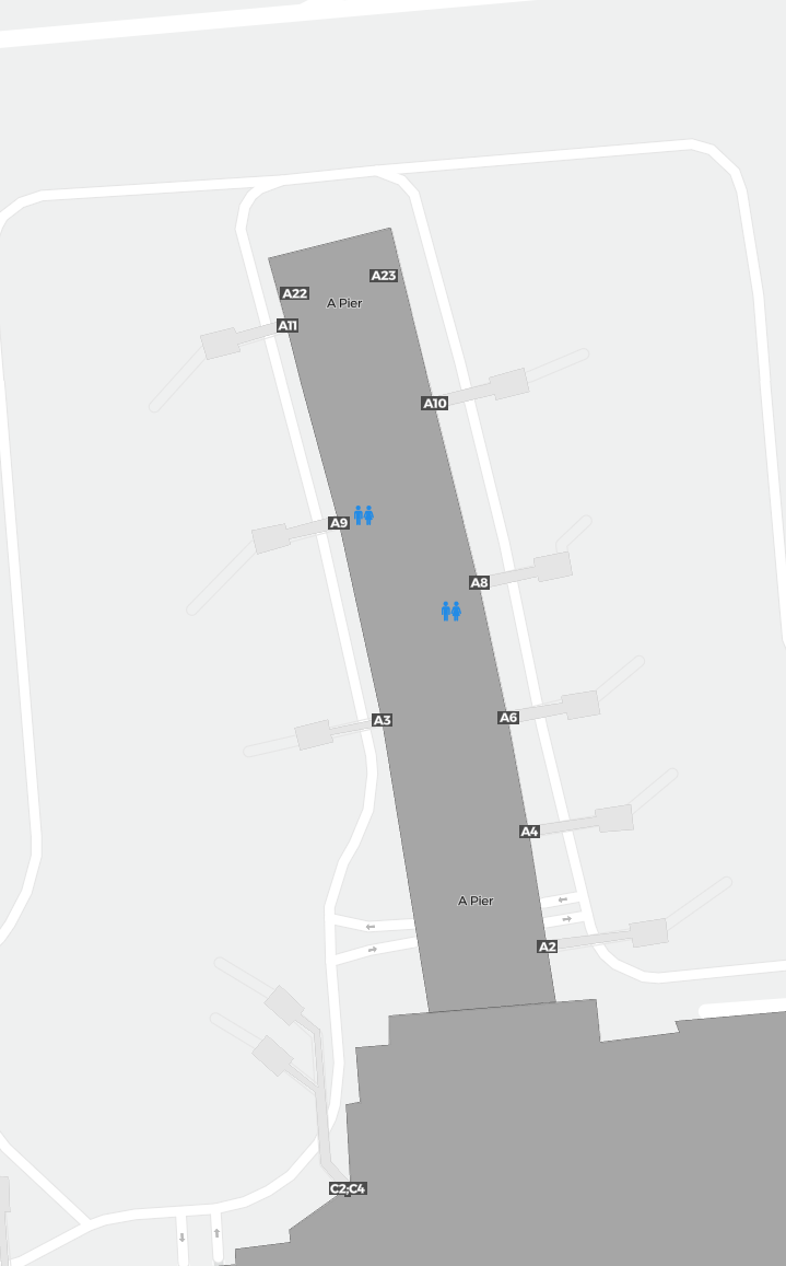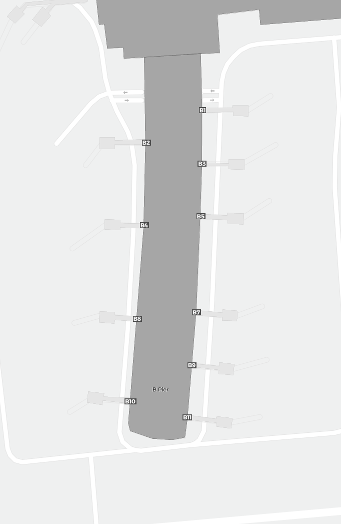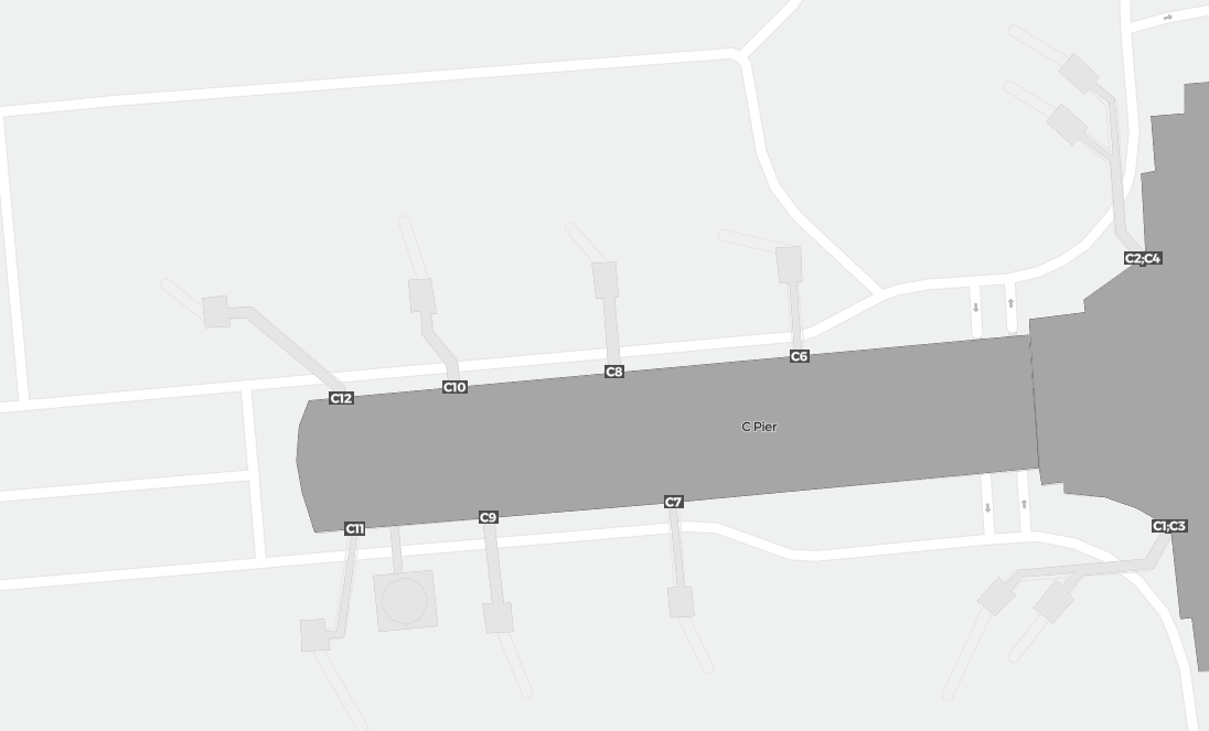 Detta är en zoombar karta över Muskat (MCT). Kartan visar utomhusområden med terminaler och parkeringar och – på vissa flygplatser – även detaljer om gate-områden, hyrbilsanläggningar och andra faciliteter när du zoomar in.