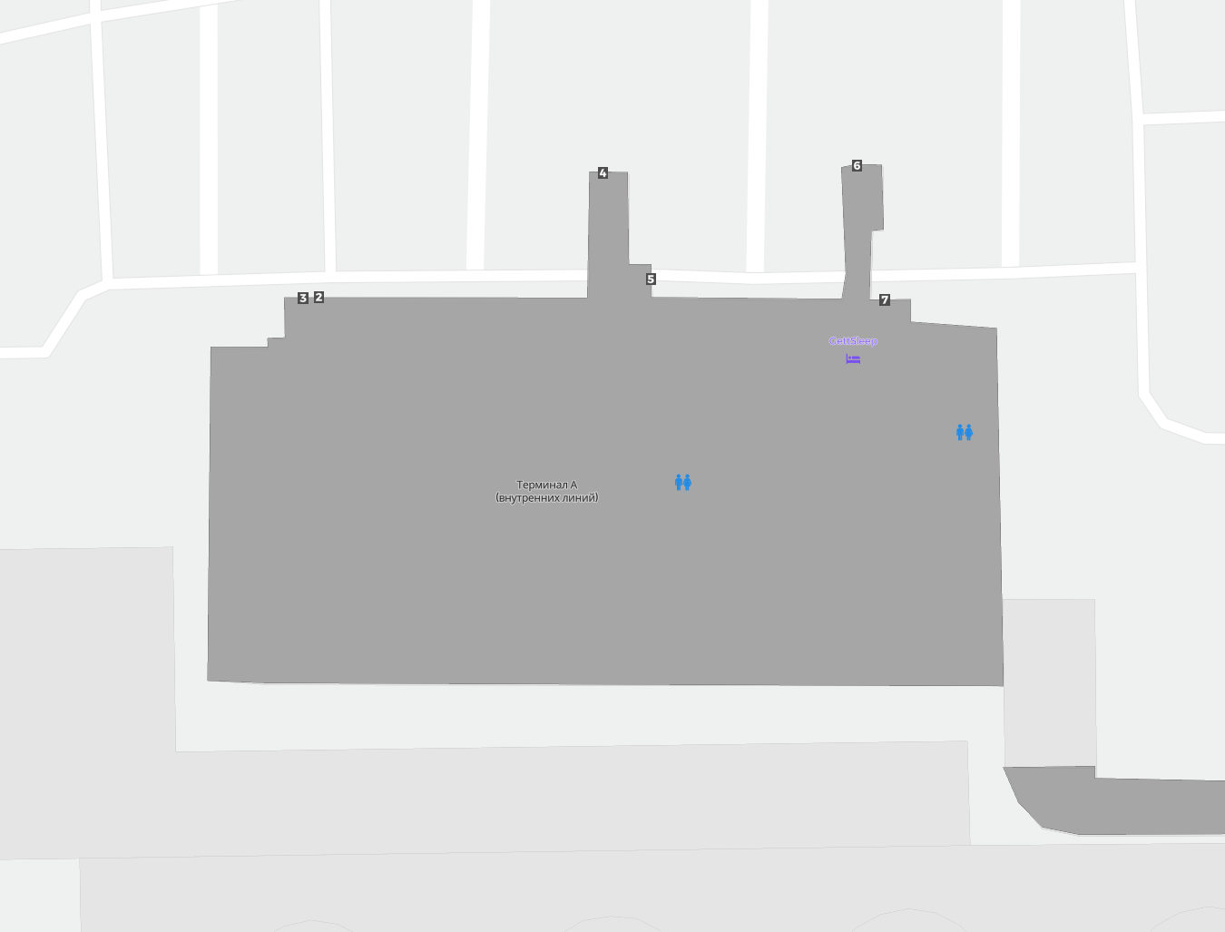 Detta är en zoombar karta över Novosibirsk (OVB). Kartan visar utomhusområden med terminaler och parkeringar och – på vissa flygplatser – även detaljer om gate-områden, hyrbilsanläggningar och andra faciliteter när du zoomar in.