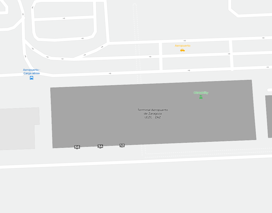Detta är en zoombar karta över Zaragoza (ZAZ). Kartan visar utomhusområden med terminaler och parkeringar och – på vissa flygplatser – även detaljer om gate-områden, hyrbilsanläggningar och andra faciliteter när du zoomar in.